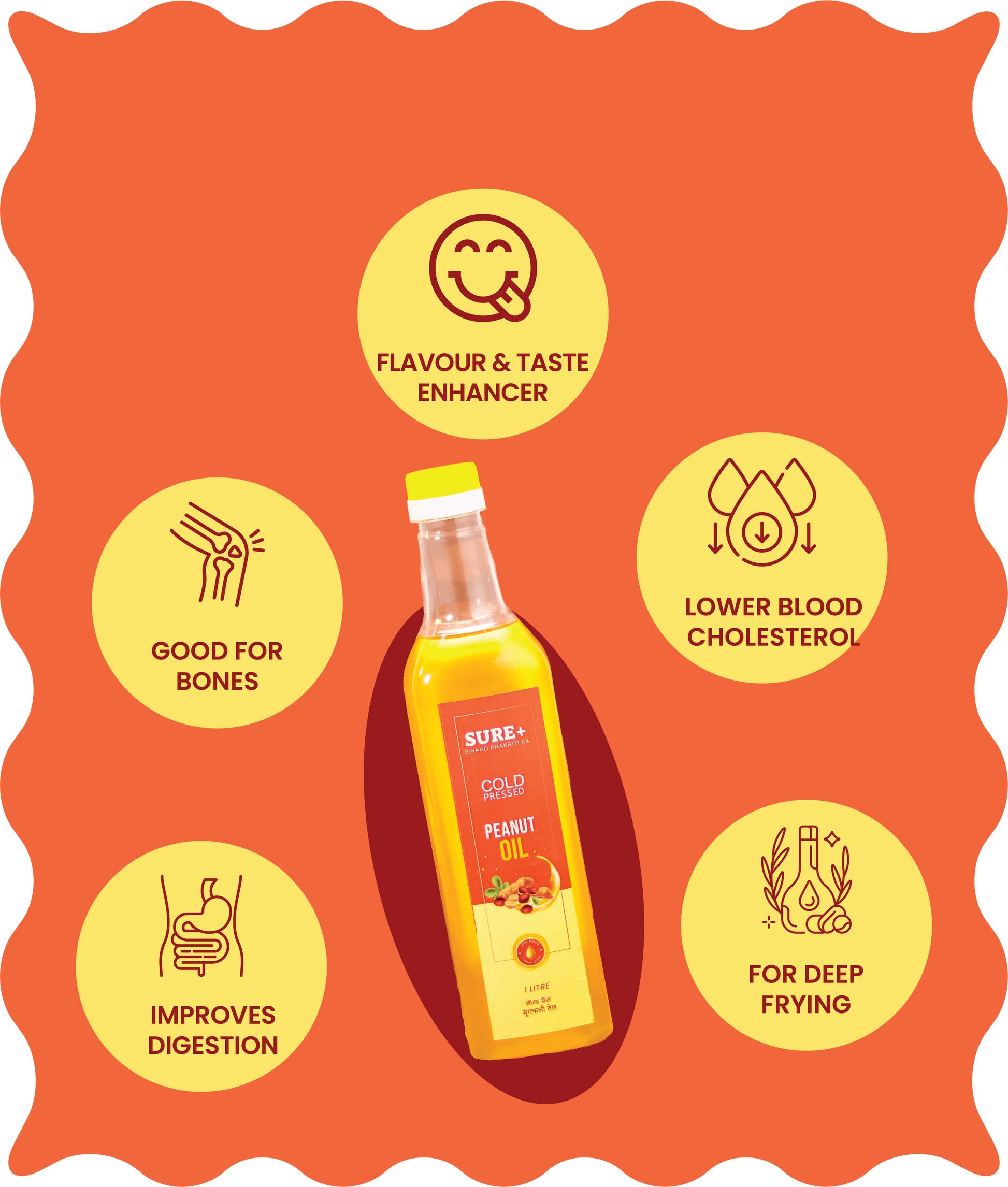 Experience the rich, natural flavor of our Peanut oil ! Crafted from cold-pressed technique, this unrefined oil contains no chemicals or preservatives, ensuring a pure and healthier option for your cooking. Elevate your dishes with its unique taste and enjoy the goodness of nature in every drop!